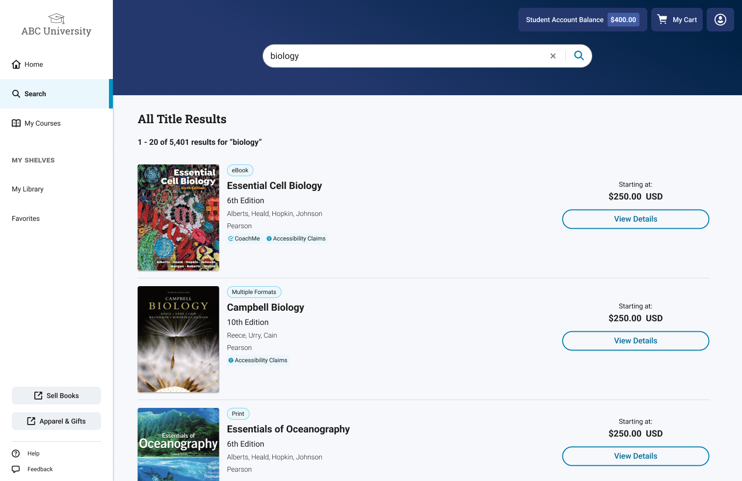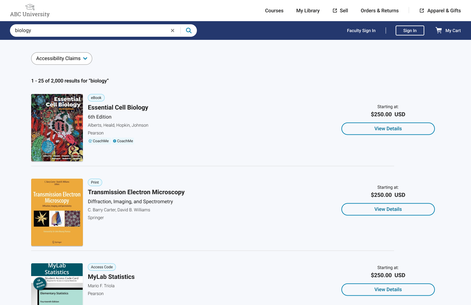 By introducing this shared component across products, we created a clear standard the team could rally around, especially when subjective feedback surfaced during the design process. Consistency throughout the user journey was a goal everyone supported. Even when different touch points required unique functionality or had database limitations, key experiences (like search results) could still look and feel familiar. And because course material access cards needed to support complex business logic, we designed them to be flexible enough to adapt without losing consistency.